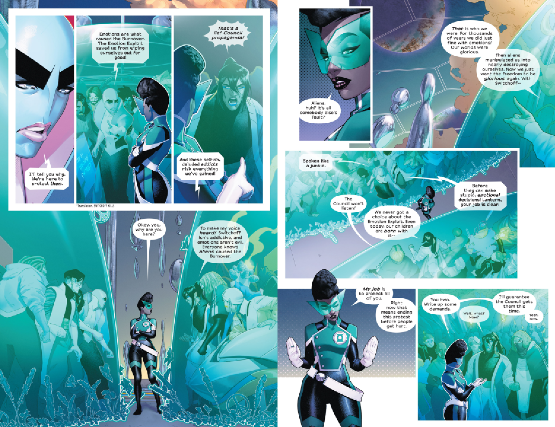 The Green Lantern Corps is always referred to amongst DC fans as "space cops" and Far Sector takes this to the obvious conclusions of showing how being a cop means being an agent of repression in any society.